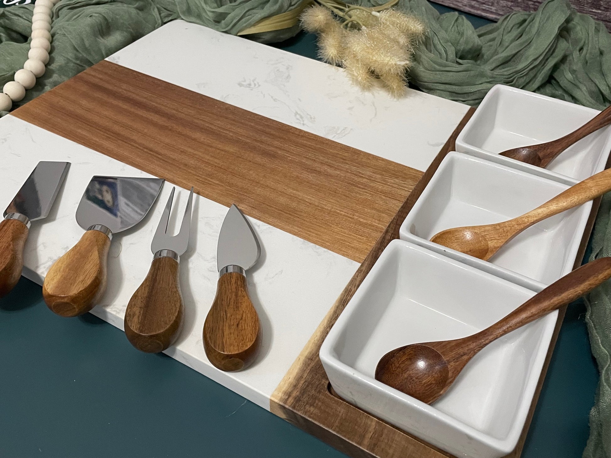 Marble and Acacia Wood Charcuterie Board - 11 Piece Set | Joya Creations